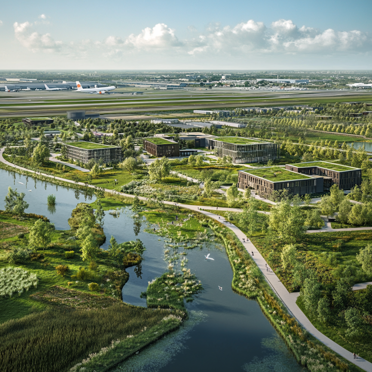 Voor een verduurzaming van zeven miljoen gebouwen alleen al in Nederland worden vooral biobased materialen gebruikt. De massale vraag naar nieuwe toepassing heeft geleid tot een biobased kennislandschap, direct verbonden met de wereld door Schiphol. In het parkachtige landschap bevinden zicht R&Do faciliteiten, laboratoria. Bij het station ligt de eerste biobased university van Europa. Hoogwaardige architectuur en voorzieningen moeten de kenniswerkers aantrekken.